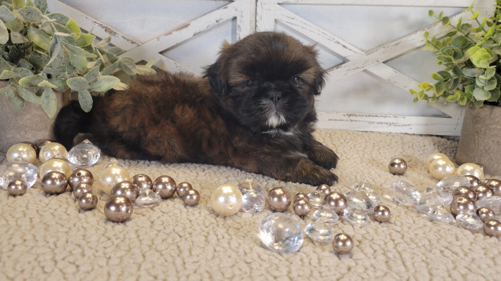 Reagan is a super sweet Shih Tzu with an affectionate and fun-loving personality. He enjoys playtime and snuggles, but nothing compares to his favorite activity—belly rubs. The moment you scratch his tummy, he’ll freeze in place, soaking in the attention, and if you stop, he’ll paw at the air with a gentle plea for more.